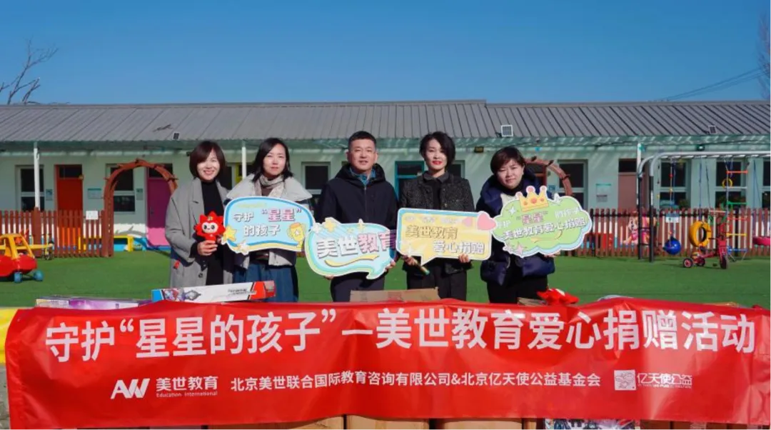 美世教育深耕教育领域二十余年,始终将“社会责任”作为企业发展的核心底色。自品牌成立以来,公益的脚步从未停歇:2022年,携手姚基金为2所陕西希望小学捐款捐物,派遣西安体育学院的2名支教志愿者前往陕西的2所乡村小学进行支教,助力大山里的孩子体育梦;2024年11月,首部图书《青年的回响——二十二位留学生的责任担当》由国家一级出版社人民东方出版社完成出版,全书全年版税捐赠予中华国际科学交流基金会,用于科创人才的培养与发展......如今,又携手亿天使公益,将爱心播撒向“星星的孩子”。
