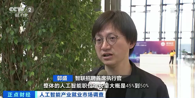 智联招聘首席执行官说:“目前整体人工智能产业的职位增长量大概是45%到50%,已经非常快了。比如计算机软件、交互设计类,增长都非常快。”