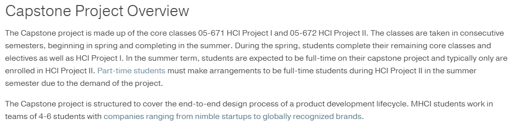MHCI 课程旨在教授以用户为中心的核心研究、交互设计、用户体验和界面编程技能,学生必须完成必修课程和选修课数量才有资格完成学位。