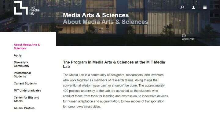 在MIT就读的本科生有机会与媒体实验室合作,并且研究生学生毕业时,可以从三个指定的学位中选择一个:媒体艺术与科学理学硕士、媒体技术理学硕士或理学硕士。