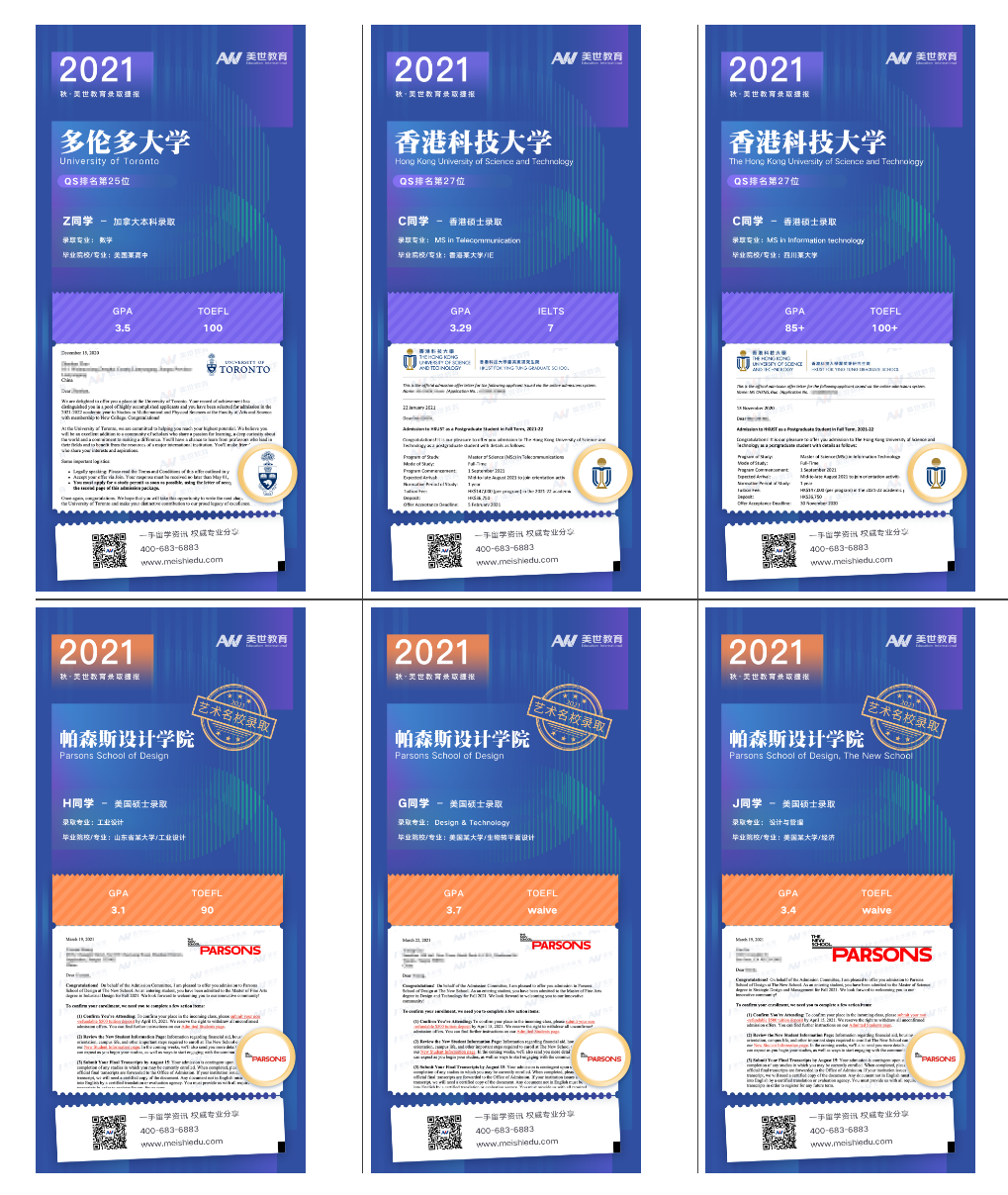 2021其他国家本硕博&艺术院校本硕录取战况也收获颇丰。接下来,再来看看我们世界名校的offer图鉴,感受同学们收获名校“脆录”那一刻的喜悦!