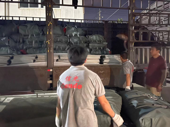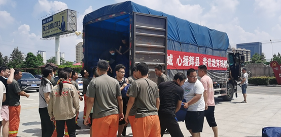 7月23日19时50分,50个冲锋舟装车完毕,货车连夜出发前往新乡辉县。