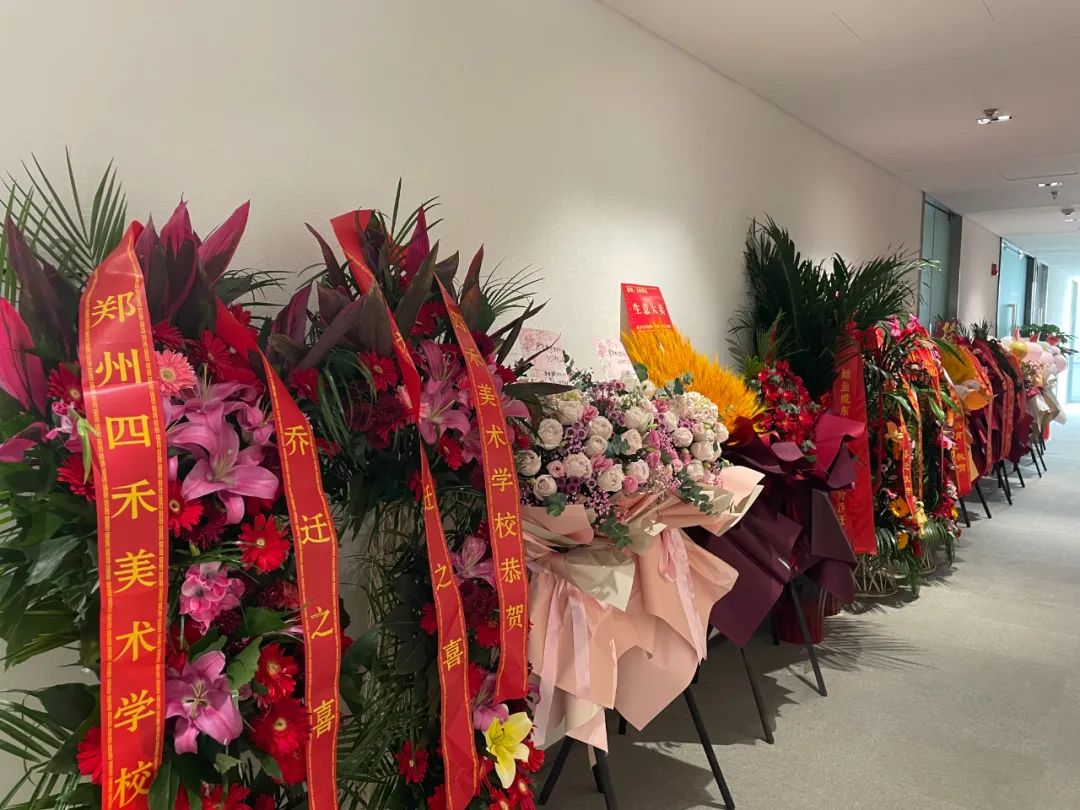 美世教育的学生和家长、合作方、媒体等国际教育各界人士,为美世郑州分公司提前送达花篮庆贺乔迁之喜!美世教育联合创始人兼COO乔美华女士、美世教育郑州分公司总经理王玥女士、阳光人寿河南分公司团险总经理张亭先生、四禾美术学校校长李国良先生等领导共同见证了这一重要时刻。